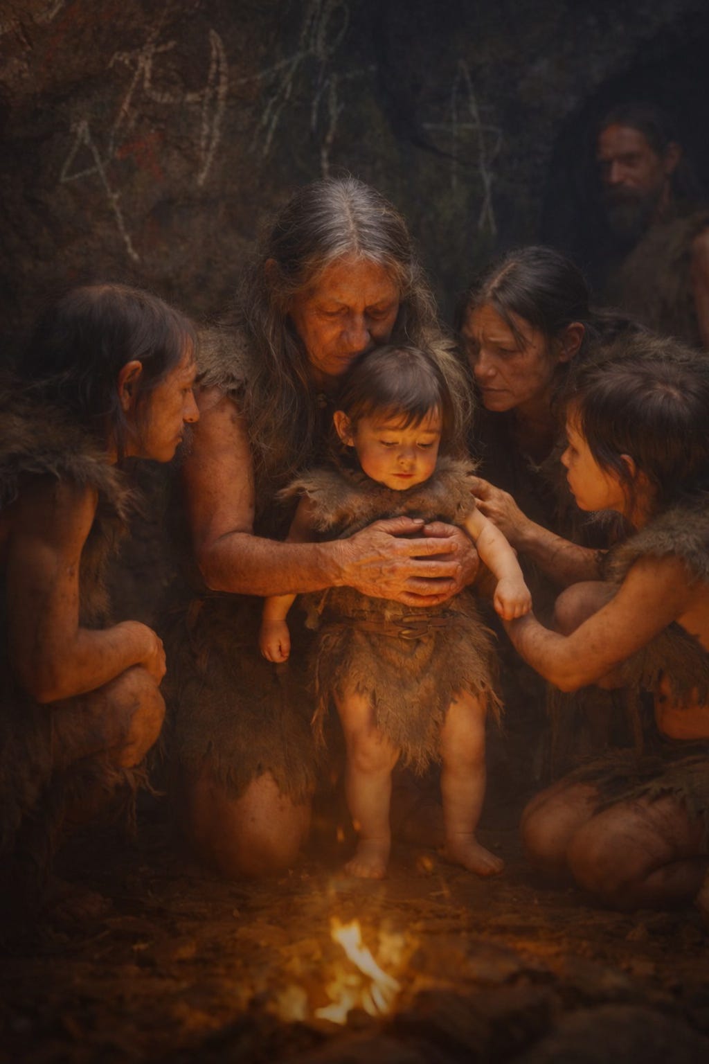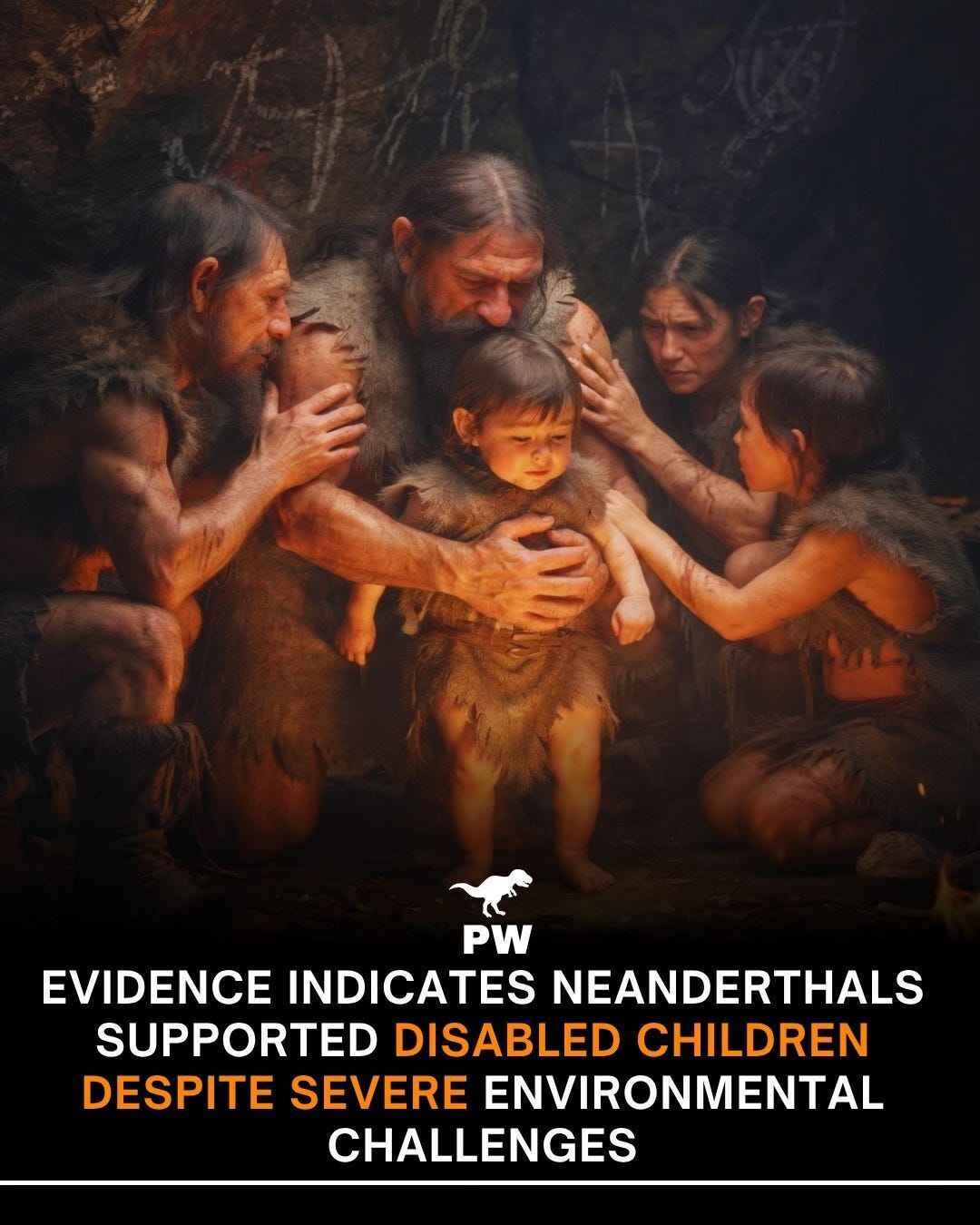 The image for this article is a beautiful rendering, warm, communal, emotionally resonant. Early humans gathered around a child in need, hands reaching in, faces full of care. The headline tells us this is evidence that Neanderthals supported disabled children despite brutal environmental conditions. It’s the kind of image that makes you feel something good about our species, about our long history of compassion, about the deep roots of human decency.